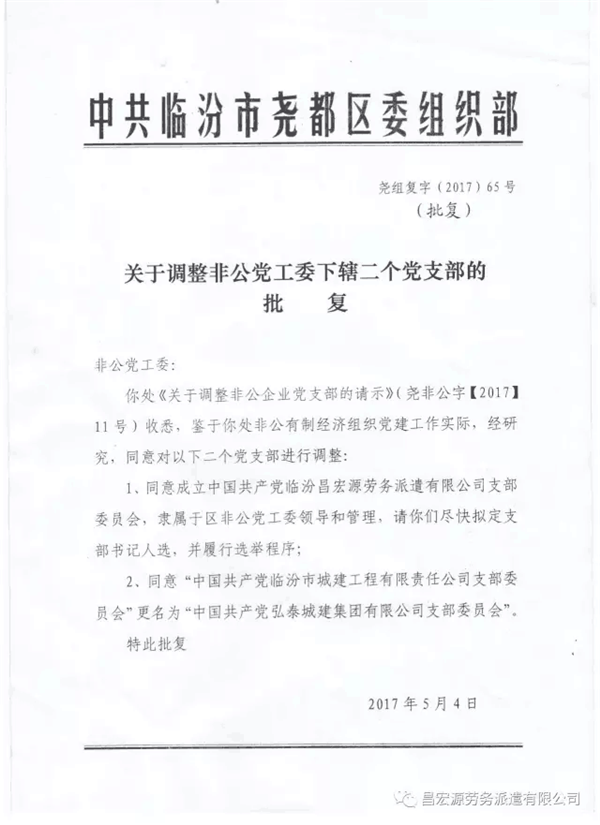 中國*********臨汾昌宏源勞務(wù)派遣有限公司支部委員會成立大會