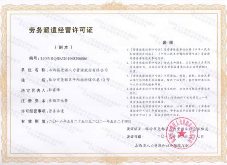 勞務(wù)派遣許可證副本 |